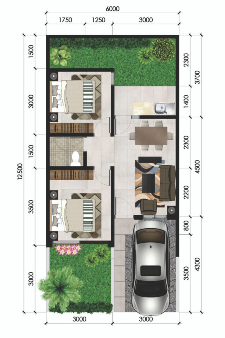Luas Tanah 75m2 [6x12,5m]